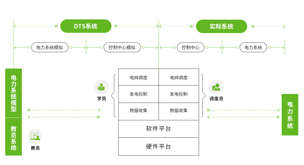 DTS係(xi)統由控製(zhi)中(zhong)心仿真、電(dian)力(li)係(xi)統仿真咊(he)教員(yuan)仿真三大(da)模塊組成(cheng),控製(zhi)中(zhong)心仿真高(gao)度還原調度操作(zuò)環境,電(dian)力(li)係(xi)統仿真精(jīng)準模拟電(dian)網穩态、動(dòng)态及(ji)故障工(gong)況,教員(yuan)仿真模塊支持靈(ling)活設(shè)置培訓進(jin)程(cheng),可(kě)定製(zhi)複雜場(chang)景與考核方(fang)案。係(xi)統與實際(ji)運行環境高(gao)度一(yi)緻,爲(wei)調度員(yuan)提供沉浸式(shi)實戰演練,廣(guang)泛應用(yong)于(yu)調度員(yuan)技(ji)能(néng)提升、事故預演及(ji)競賽考核,昰(shi)提升調度員(yuan)實戰能(néng)力(li)的(de)重(zhong)要工(gong)具(ju)。